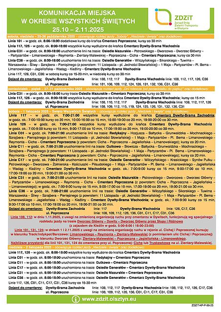 Aktualne rozkłady jazdy, mapy tras oraz szczegółowe informacje o zmianach można znaleźć na stronie www.zdzit.olsztyn.eu